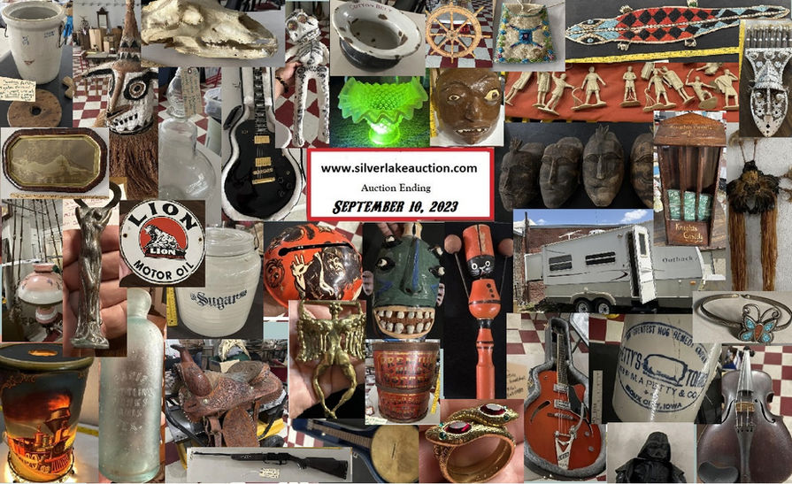 We are continuing to liquidate 2 large collections of signs and advertising. Also this sale includes a combination of several estates and collections of antiques including old toys, antique books, music equipment and records, Halloween and Christmas items, art glass, pottery, porcelain, autographed photos, old bottles, antique furniture, dealer lots, storage lots, lamps and lighting, original art and art prints, sewing / fabric items, lots lots more.